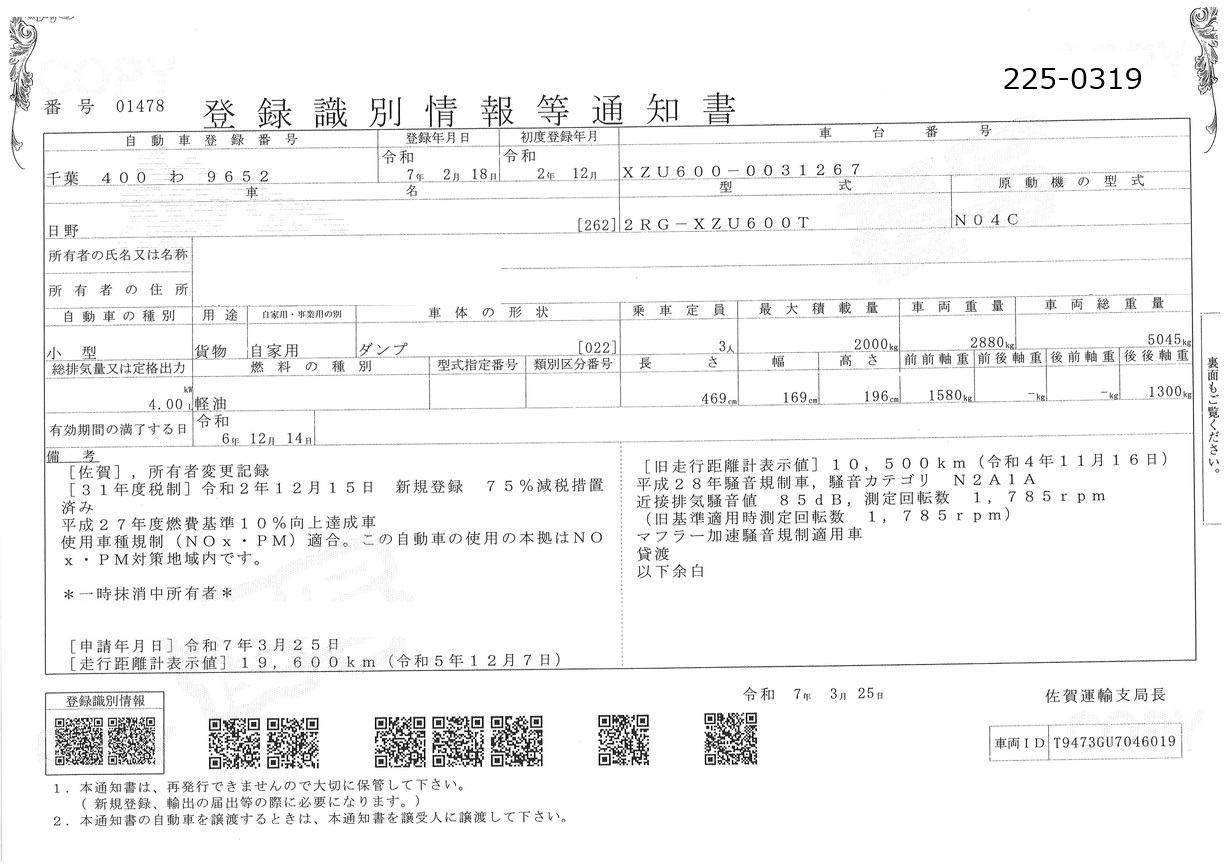 車両形式 | 2RG-XZU600T | エンジン馬力 | 150PS |