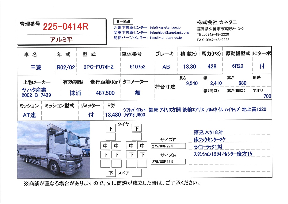 | 形状 | アルミ平 | 年式 | R02/02 |
