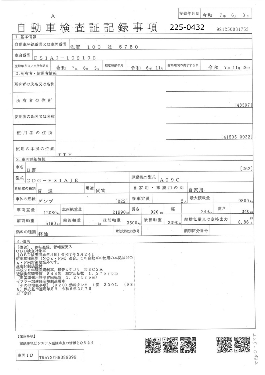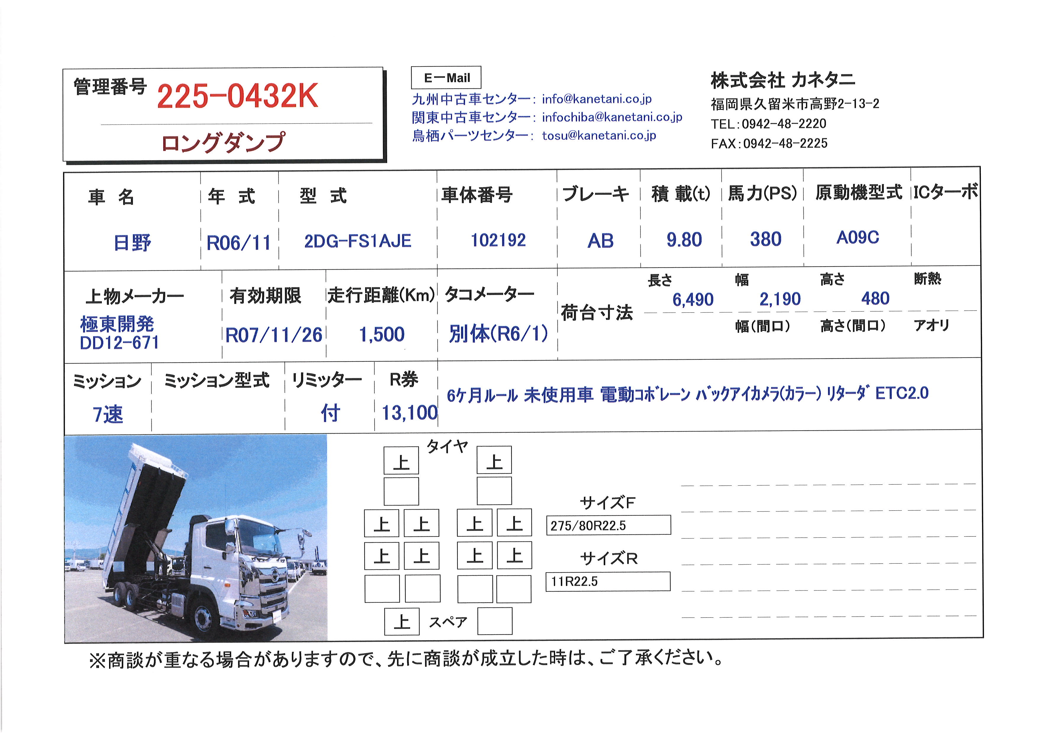 | 形状 | ロングダンプ | 年式 | R06/11 |