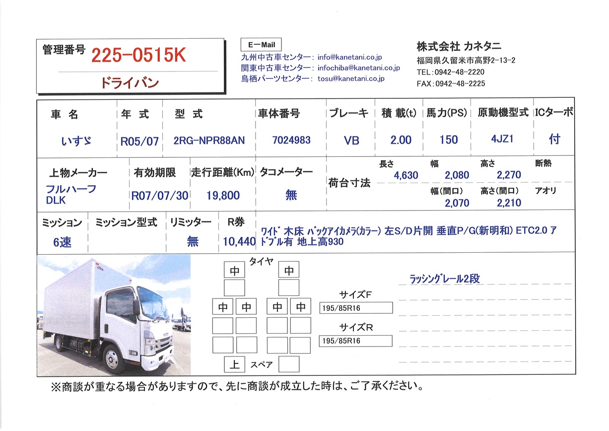 | 形状 | ドライバン | 年式 | R05/07 |
