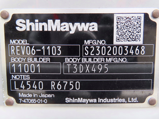 | 備考 | ワイド 木床 バックアイカメラ(カラー) 左S/D片開 垂直P/G(新明和) ETC2.0 アドブル有 地上高930 |