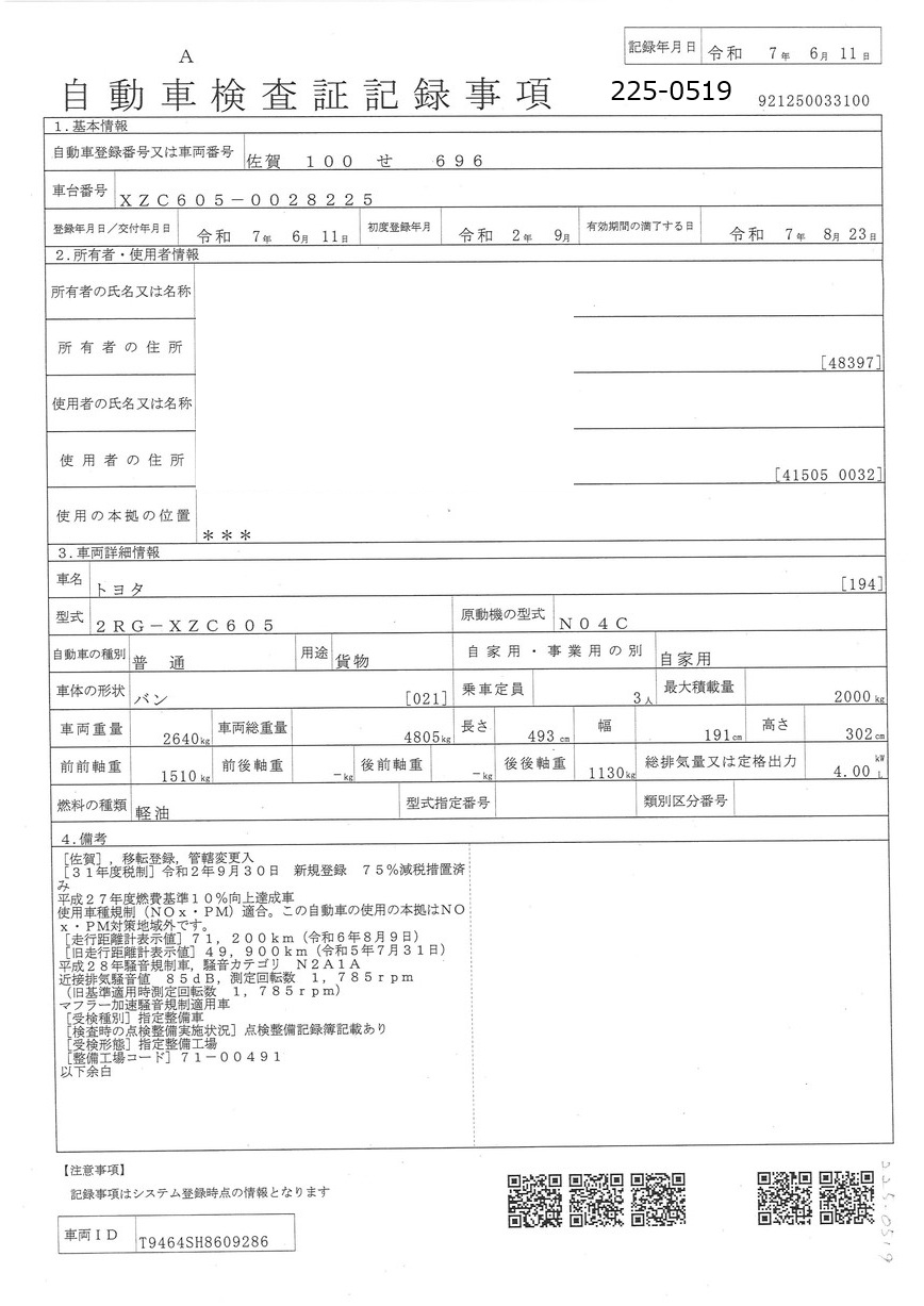 | 車両形式 | 2RG-XZC605 | エンジン馬力 | 150PS |