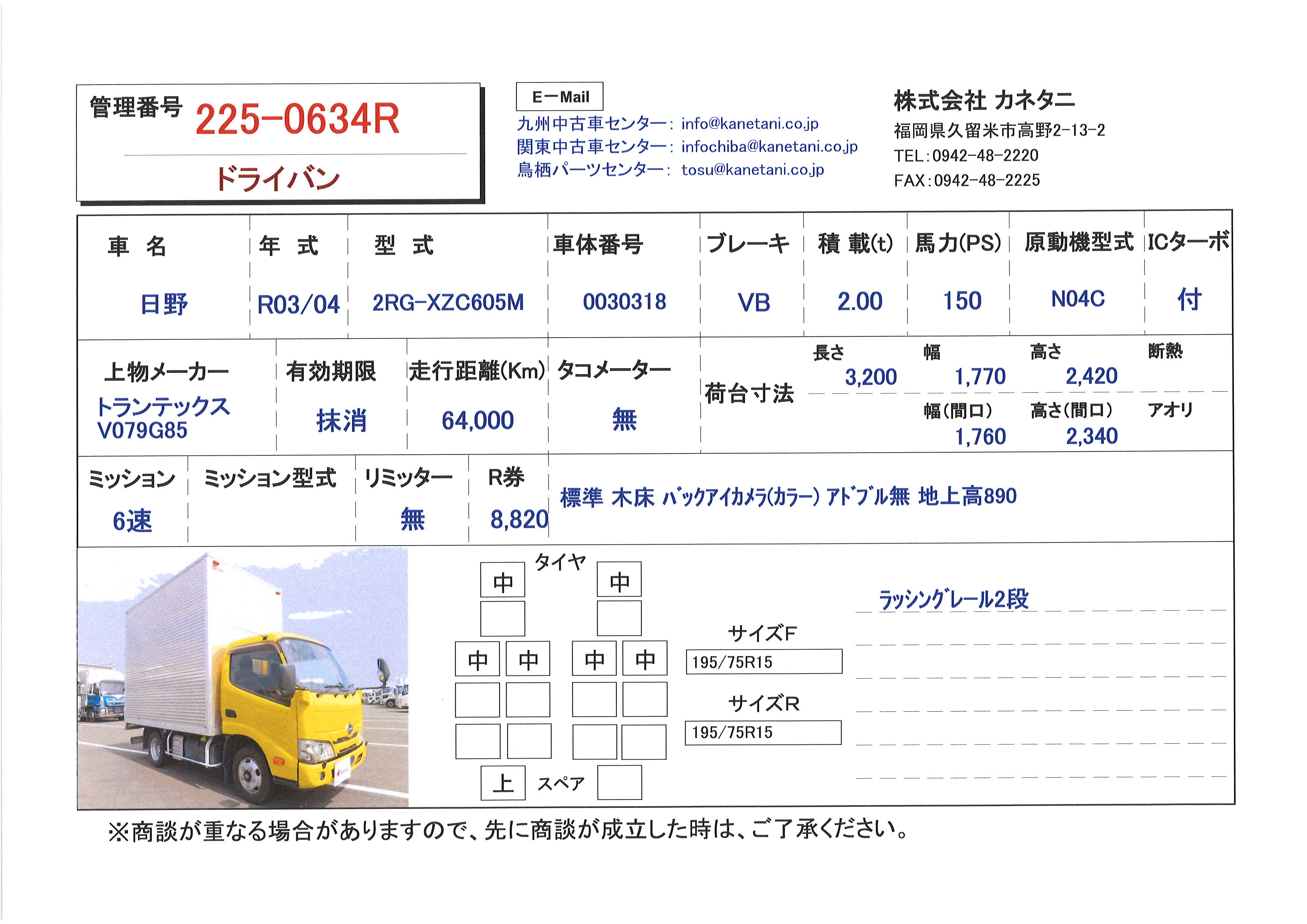 お問い合わせ番号:225-0634Rクラス(車両) | 小型 | メーカー | 日野 |