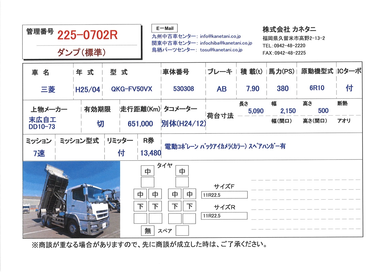| 形状 | ダンプ(標準) | 年式 | H25/04 |