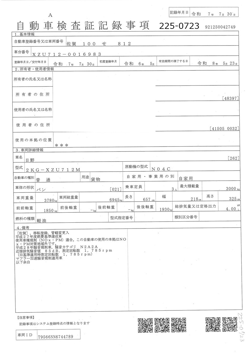 車両形式 | 2KG-XZU712M | エンジン馬力 | 150PS |