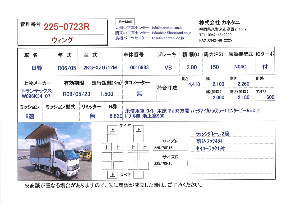 備考 | 未使用車 ワイド 木床 アオリ3方開 バックアイカメラ(カラー) センタービームレス アドブル無 地上高900 |