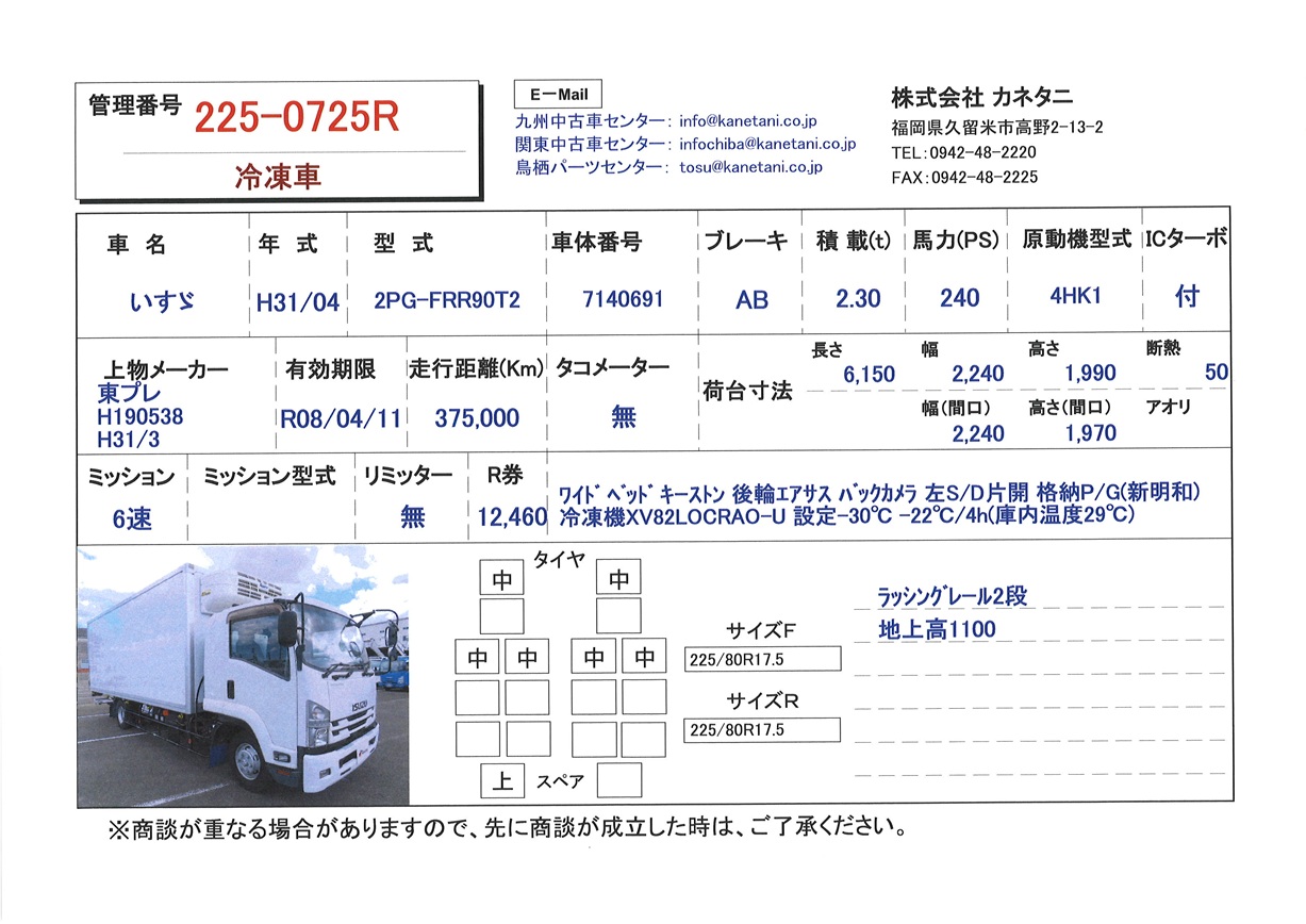 | 形状 | 冷凍車 | 年式 | H31/04 |