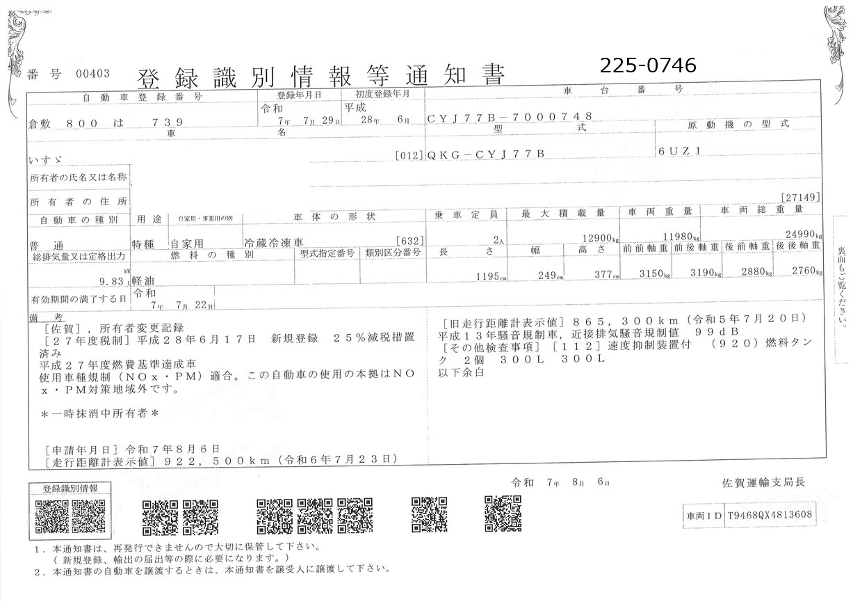 お問い合わせ番号:225-0746R| クラス(車両) | 大型 | メーカー | いすゞ |