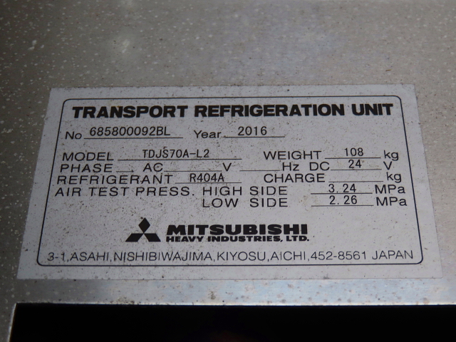 | 備考 | アルミ縞床 アオリ5方開 後輪エアサス バックカメラ(カラー) リターダ TDJS70A-L2 設定-30℃ 18℃/3h(庫内34℃) スタンバイ アルミホイール アドブル 地上高1100 |