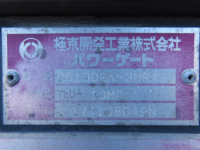| 備考 | ワイド ベッド 木床 アオリ3方開 後輪エアサス バックアイカメラ(カラー) 格納P/G(極東開発) ETC アドブル 地上高980 メインキー1 スペアキー1 |