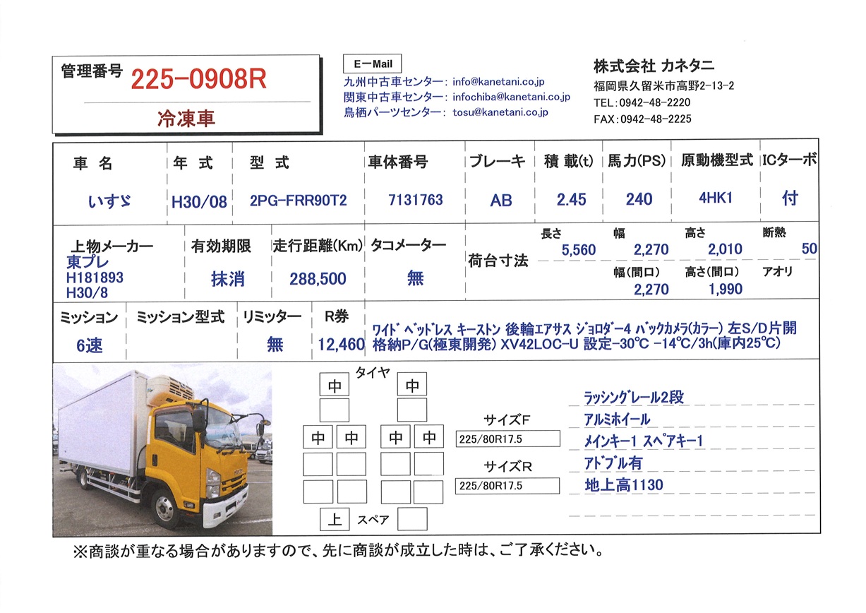 お問い合わせ番号:225-0908Rクラス(車両) | 中型 | メーカー | いすゞ |