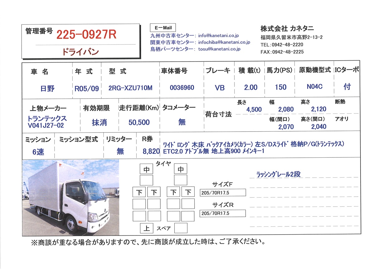 お問い合わせ番号:225-0927Rクラス(車両) | 小型 | メーカー | 日野 |