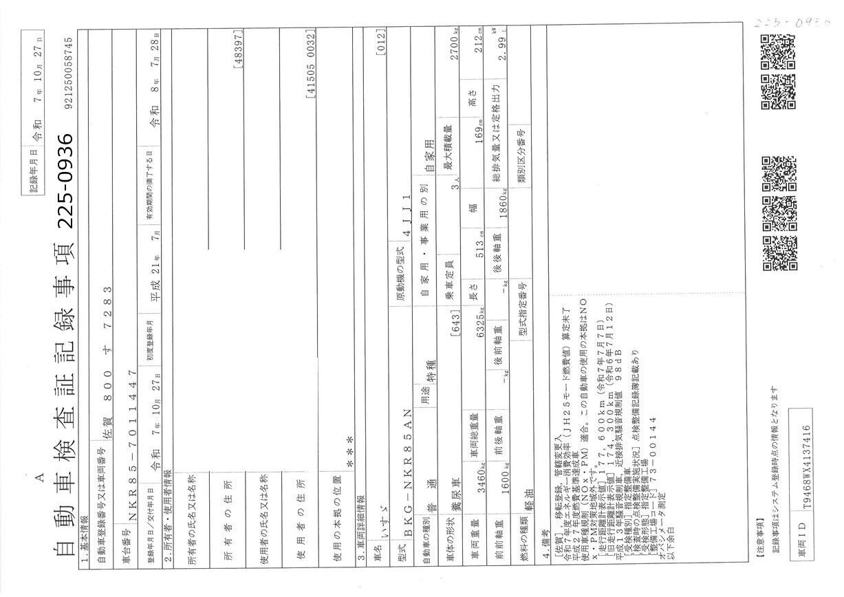 お問い合わせ番号:225-0936G| クラス(車両) | 小型 | メーカー | いすゞ |