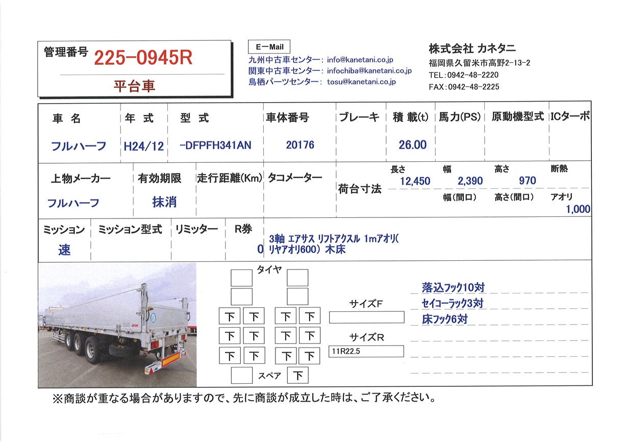 お問い合わせ番号:225-0945R| クラス(車両) | 大型 | メーカー | フルハーフ |
