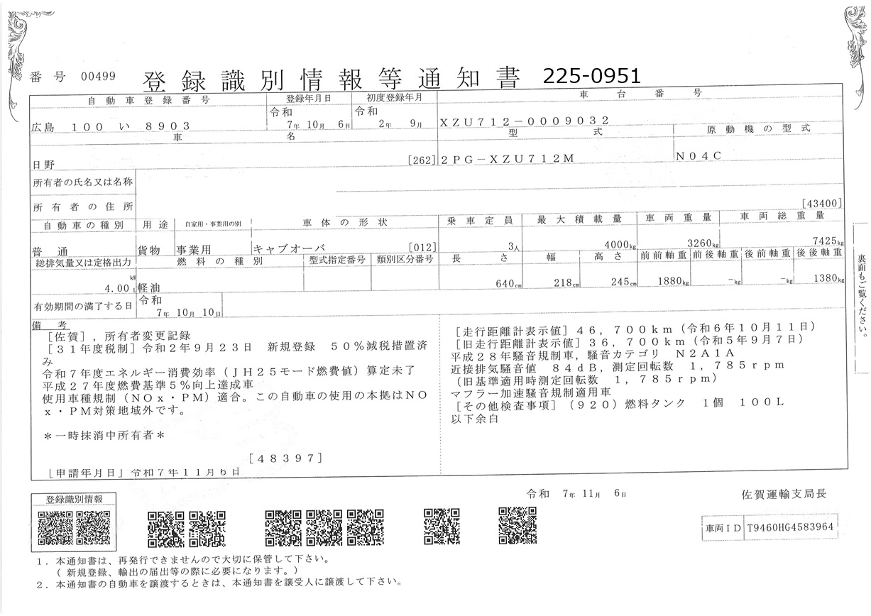 | 備考 | AT ワイド 鉄床 アオリ3方開 バックアイカメラ(カラー) アドブル無 地上高1050 メインキー1本 |