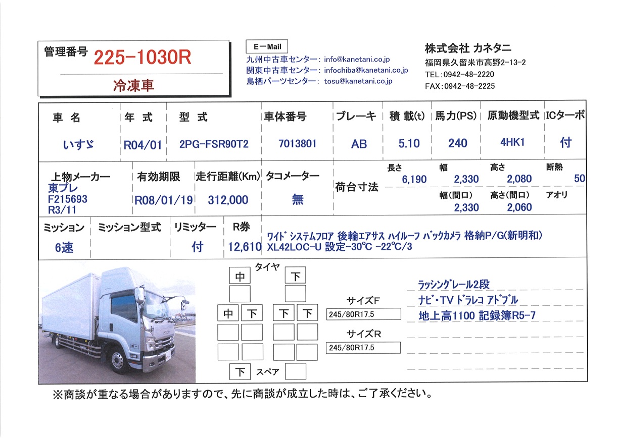 | 形状 | 冷凍車 | 年式 | R04/01 |