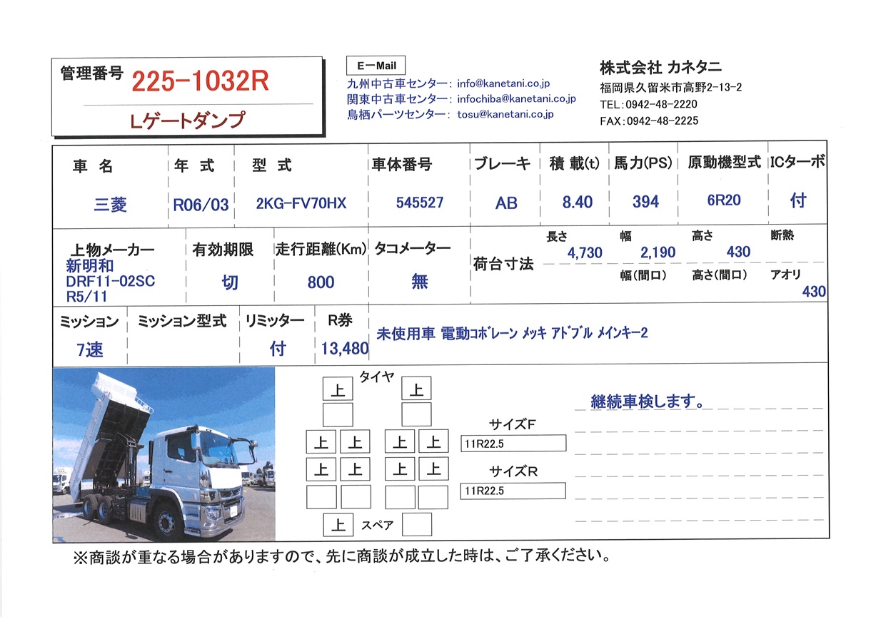 | 形状 | Lゲートダンプ | 年式 | R06/03 |