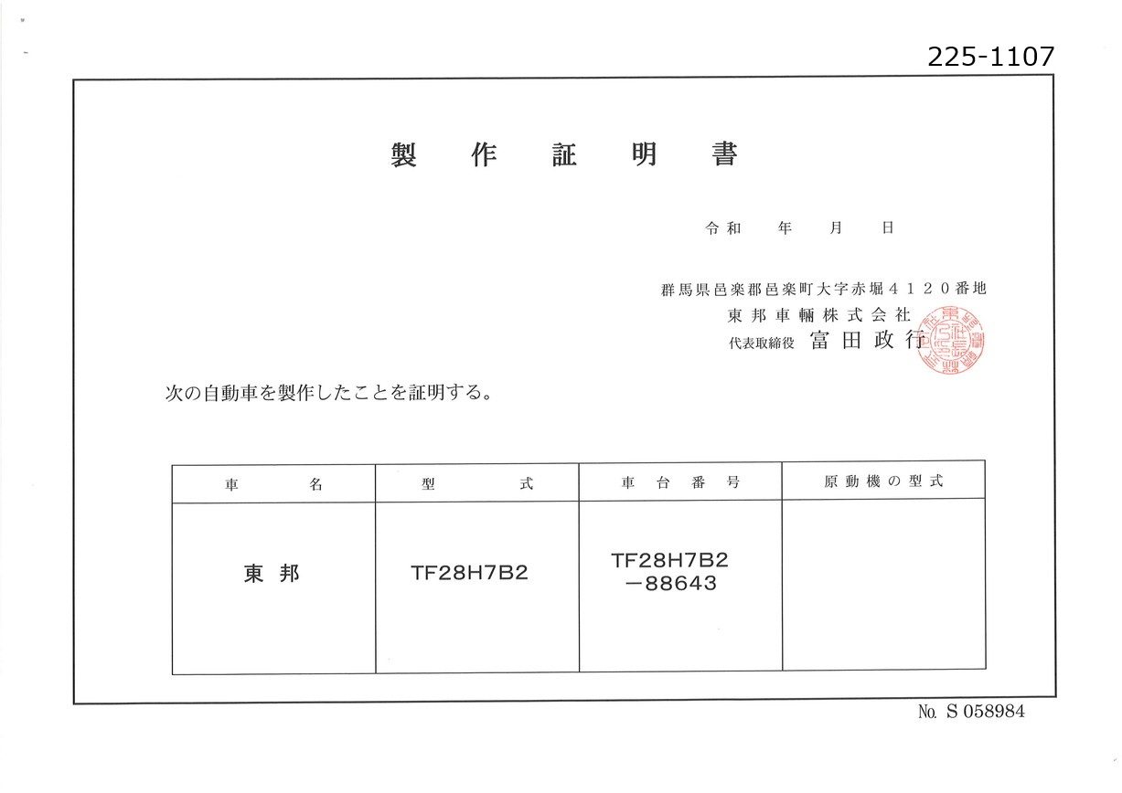 | 車両形式 | -TF28H7B2改 | エンジン馬力 | 0PS |