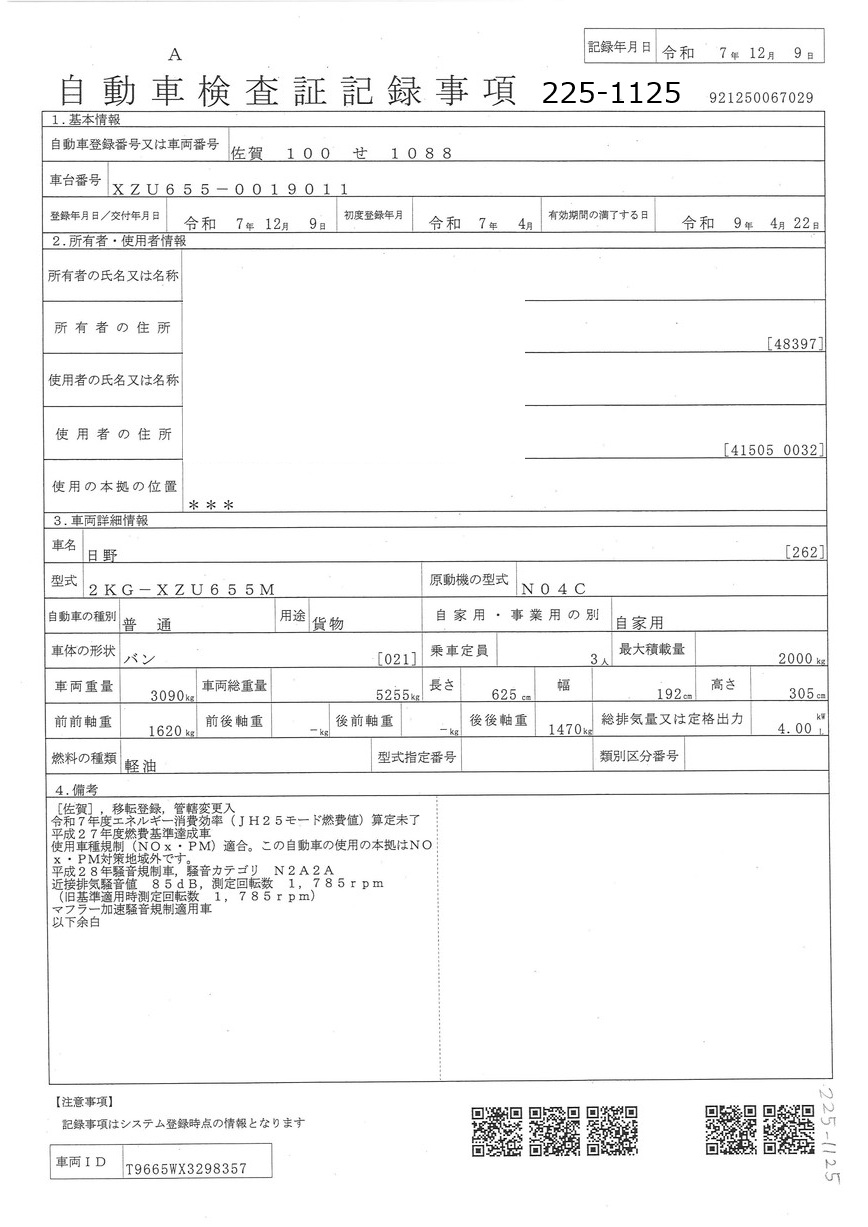 | 車両形式 | 2KG-XZU655M | エンジン馬力 | 150PS |