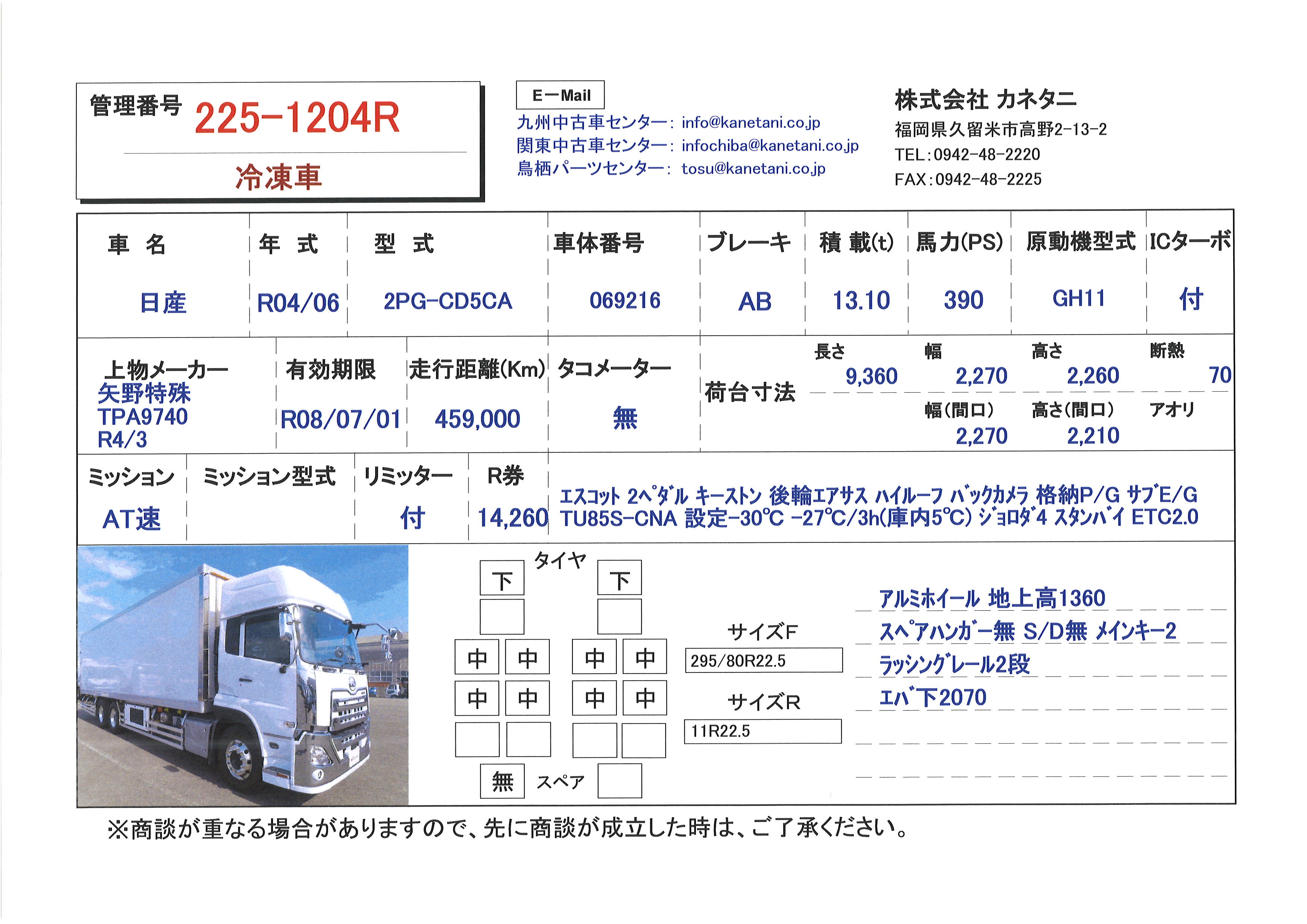 お問い合わせ番号:225-1204R| クラス(車両) | 大型 | メーカー | 日産 |