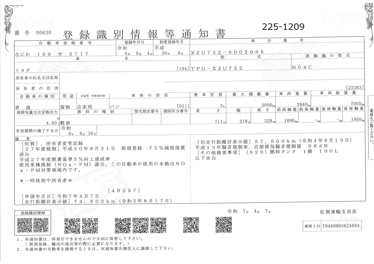 | 備考 | ワイド 木床 アオリ3方開 センタービームレス バックアイカメラ(カラー) アドブル無 地上高930 メインキー1 スペアキー1 |