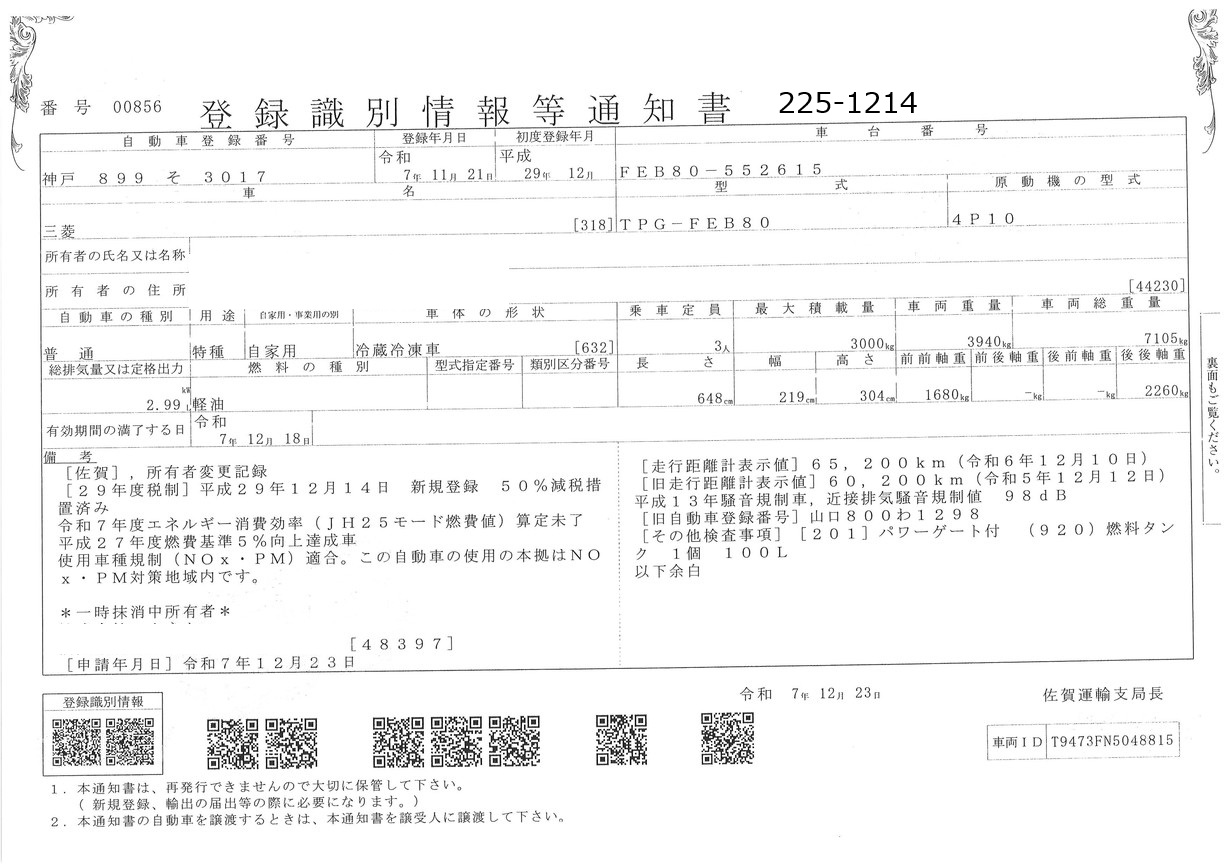 お問い合わせ番号:225-1214R| クラス(車両) | 小型 | メーカー | 三菱 |