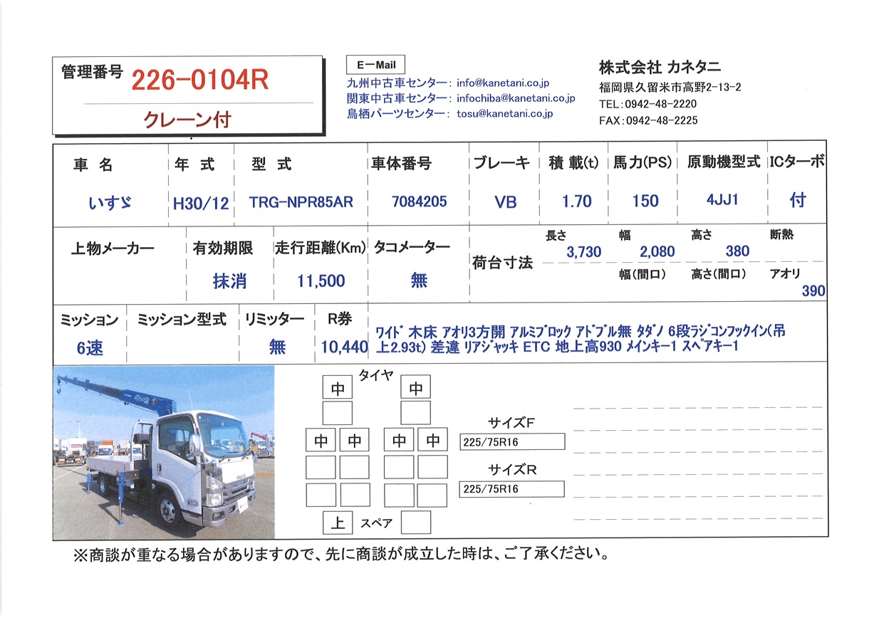 | 形状 | クレーン付 | 年式 | H30/12 |