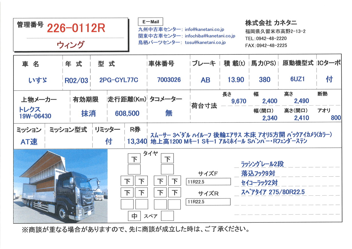 お問い合わせ番号:226-0112R| クラス(車両) | 大型 | メーカー | いすゞ |