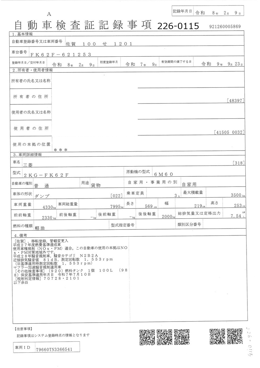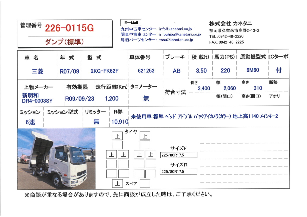 | 形状 | ダンプ(標準) | 年式 | R07/09 |