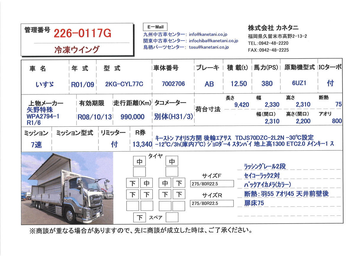 | 形状 | 冷凍ウイング | 年式 | R01/09 |