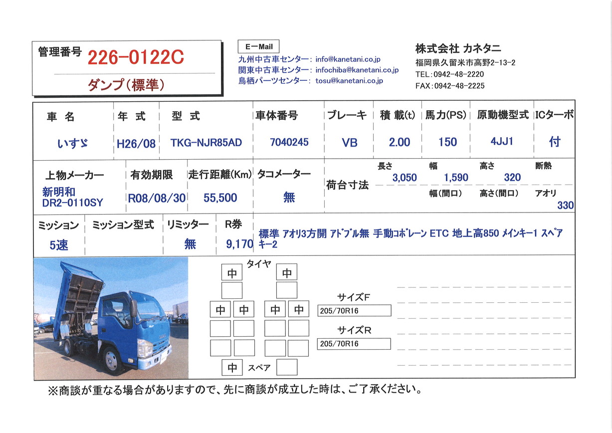 | 形状 | ダンプ(標準) | 年式 | H26/08 |
