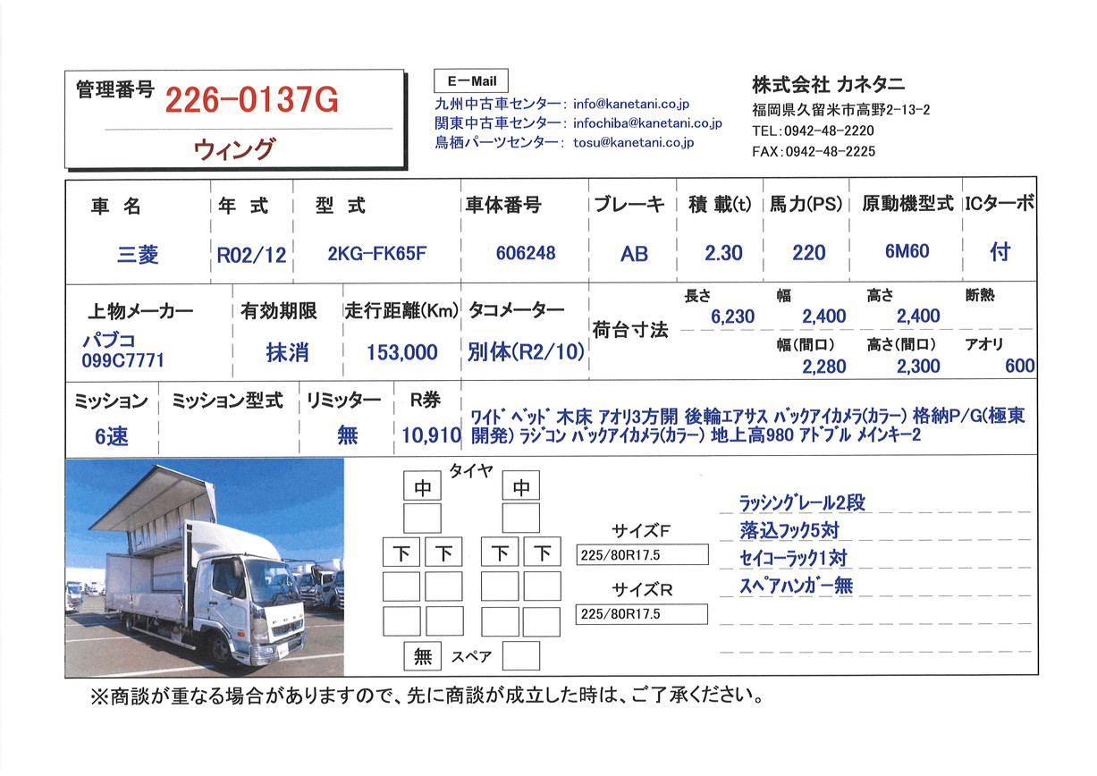 | 形状 | ウィング | 年式 | R02/12 |