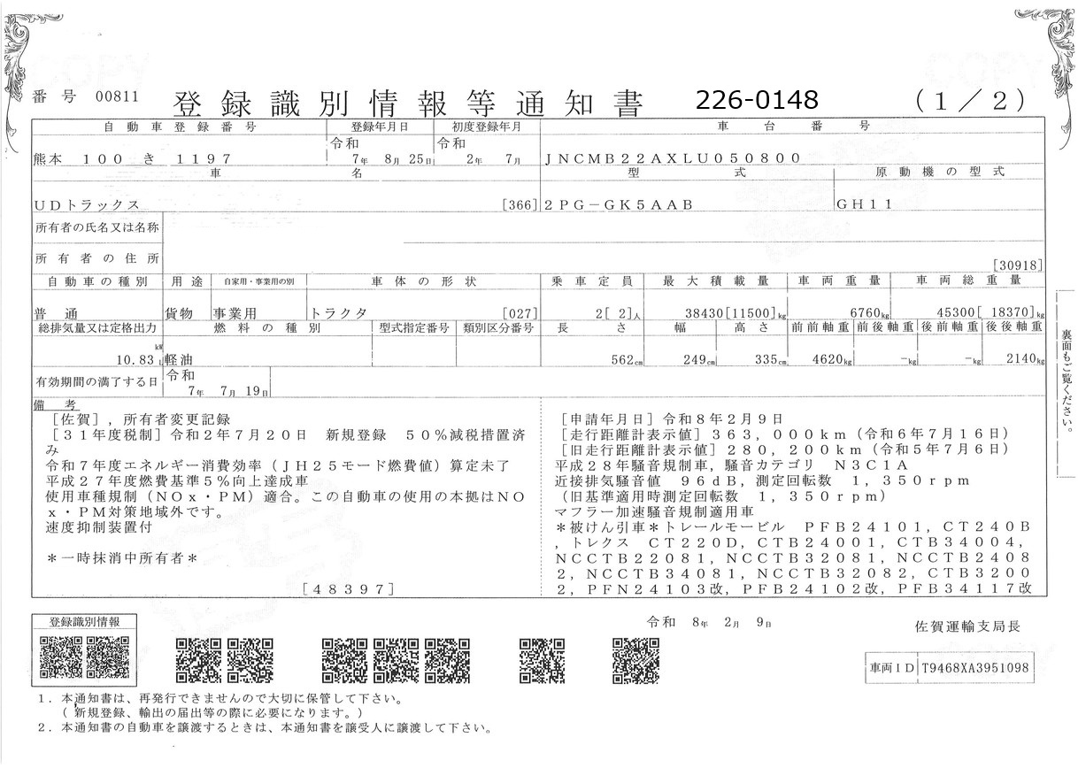| 形状 | トラクター | 年式 | R02/07 |
