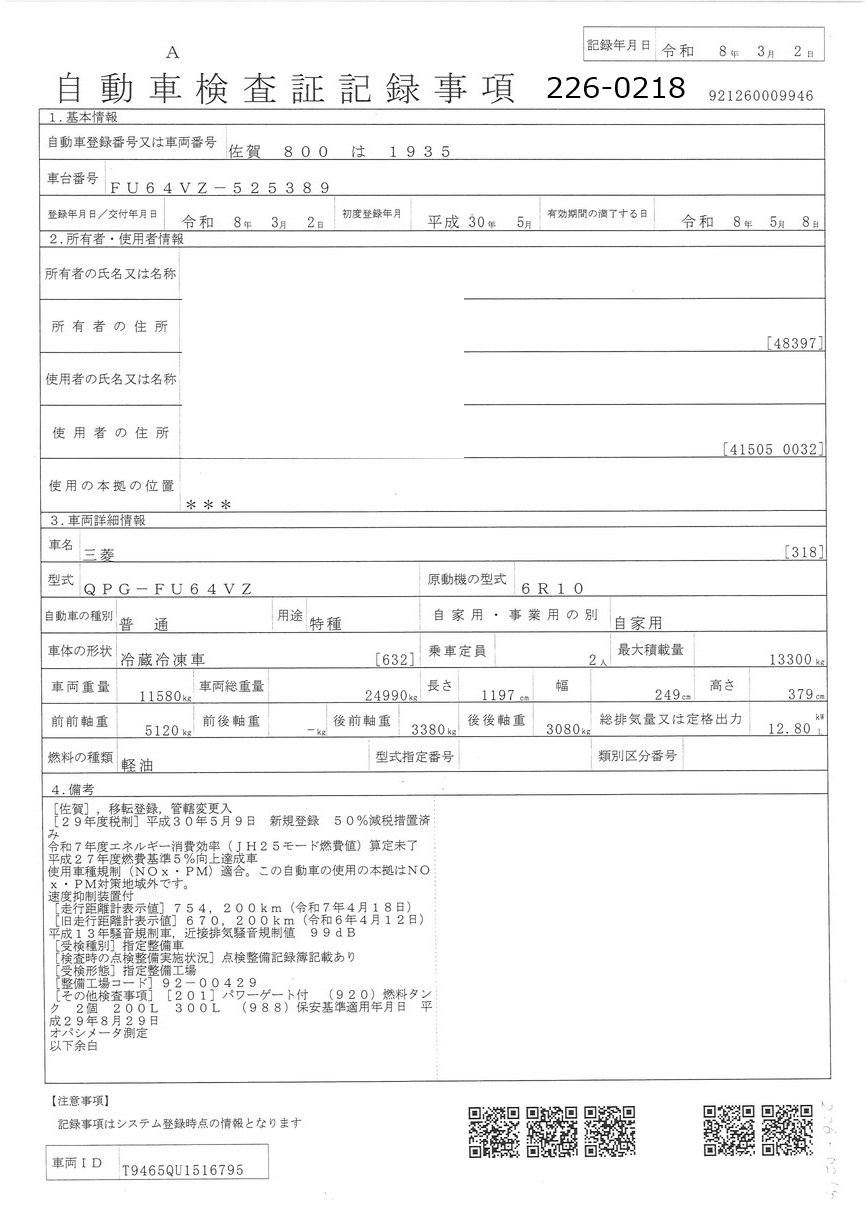 | 車両形式 | QPG-FU64VZ | エンジン馬力 | 380PS |