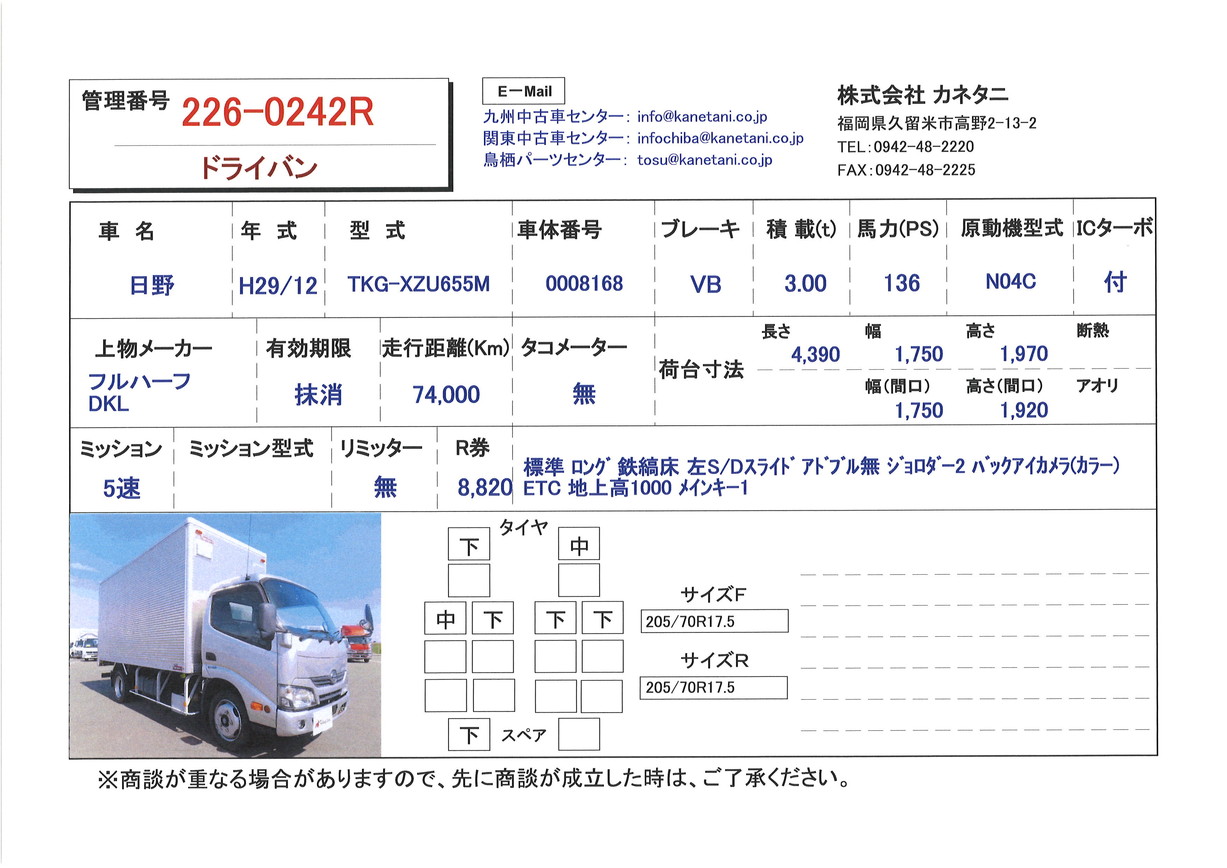 | 形状 | ドライバン | 年式 | H29/12 |