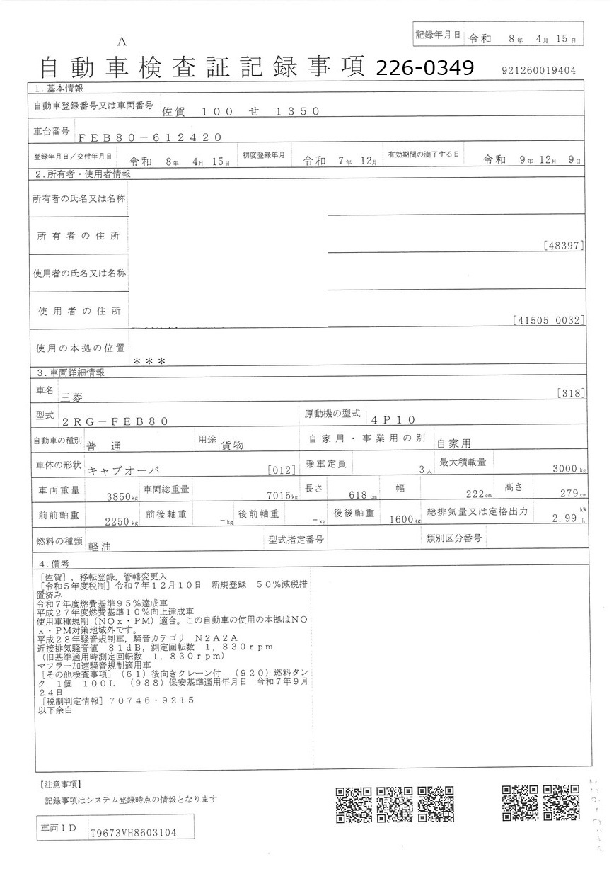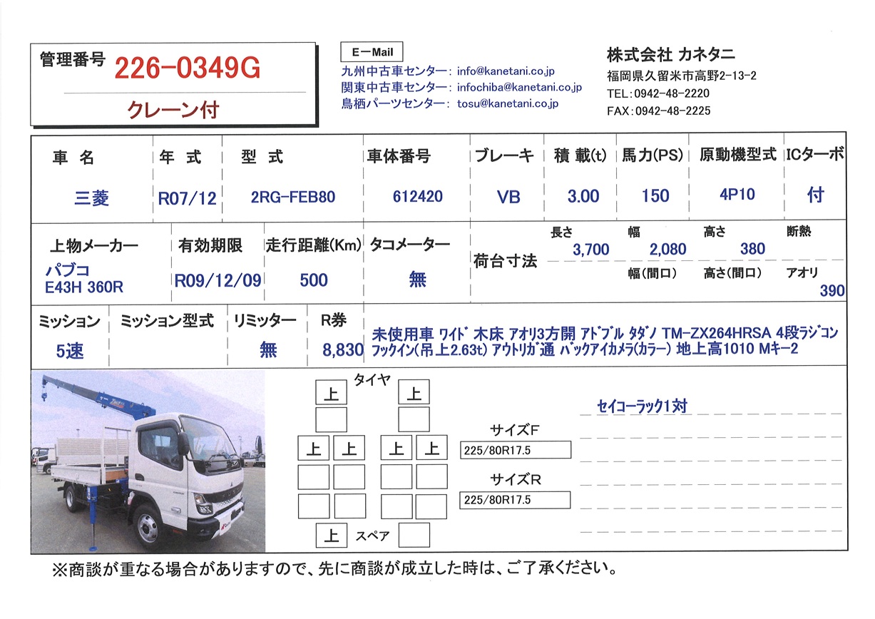 | 形状 | クレーン付 | 年式 | R07/12 |
