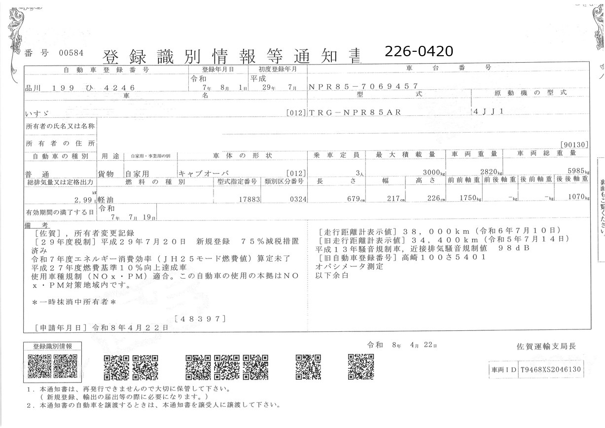 | 車両形式 | TRG-NPR85AR | エンジン馬力 | 150PS |