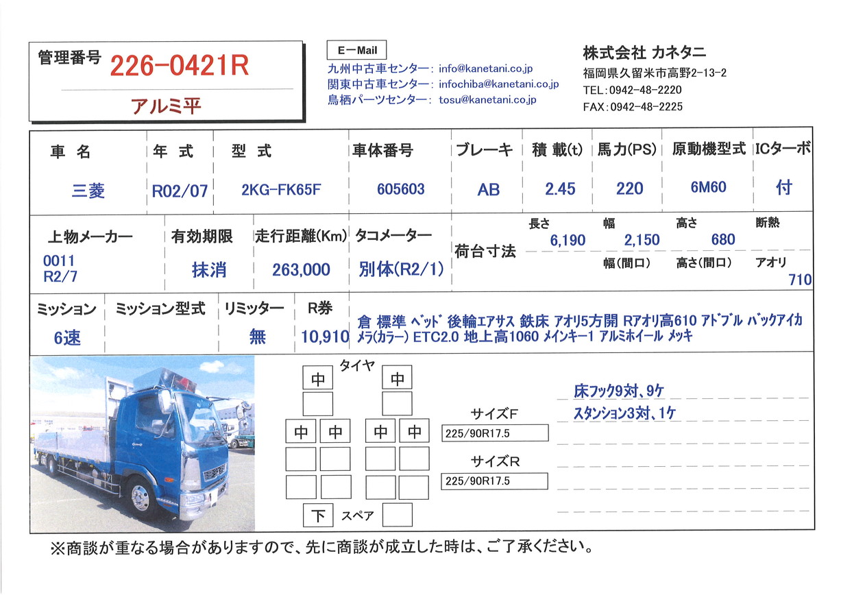 | 形状 | アルミ平 | 年式 | R02/07 |