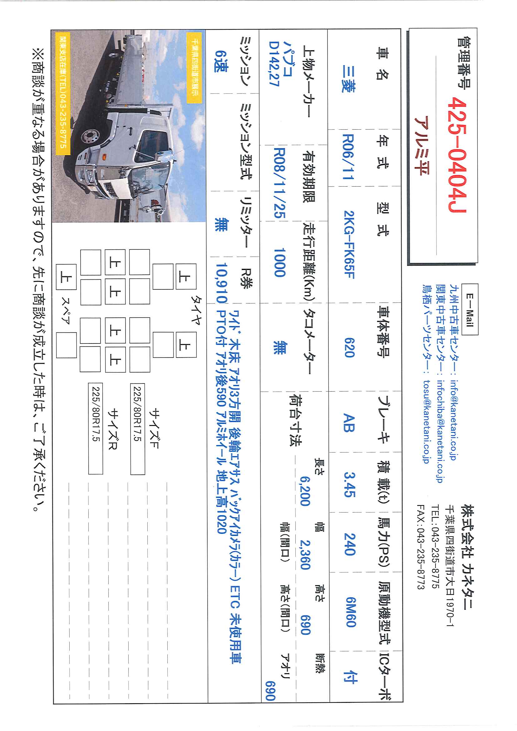 お問い合わせ番号:425-0404Jクラス(車両) | 中型 | メーカー | 三菱 |