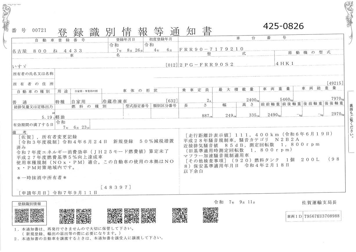 車両形式 | 2PG-FRR90S2 | エンジン馬力 | 210PS |