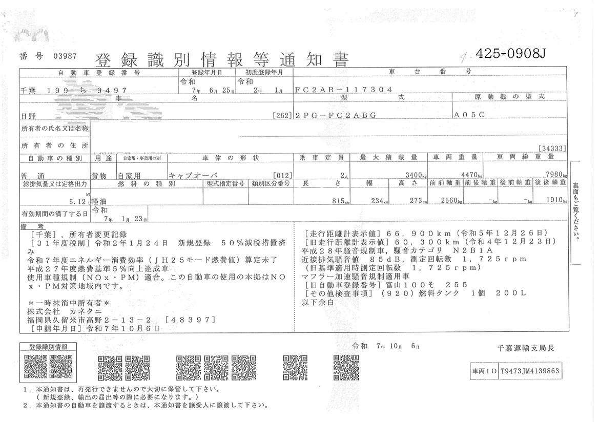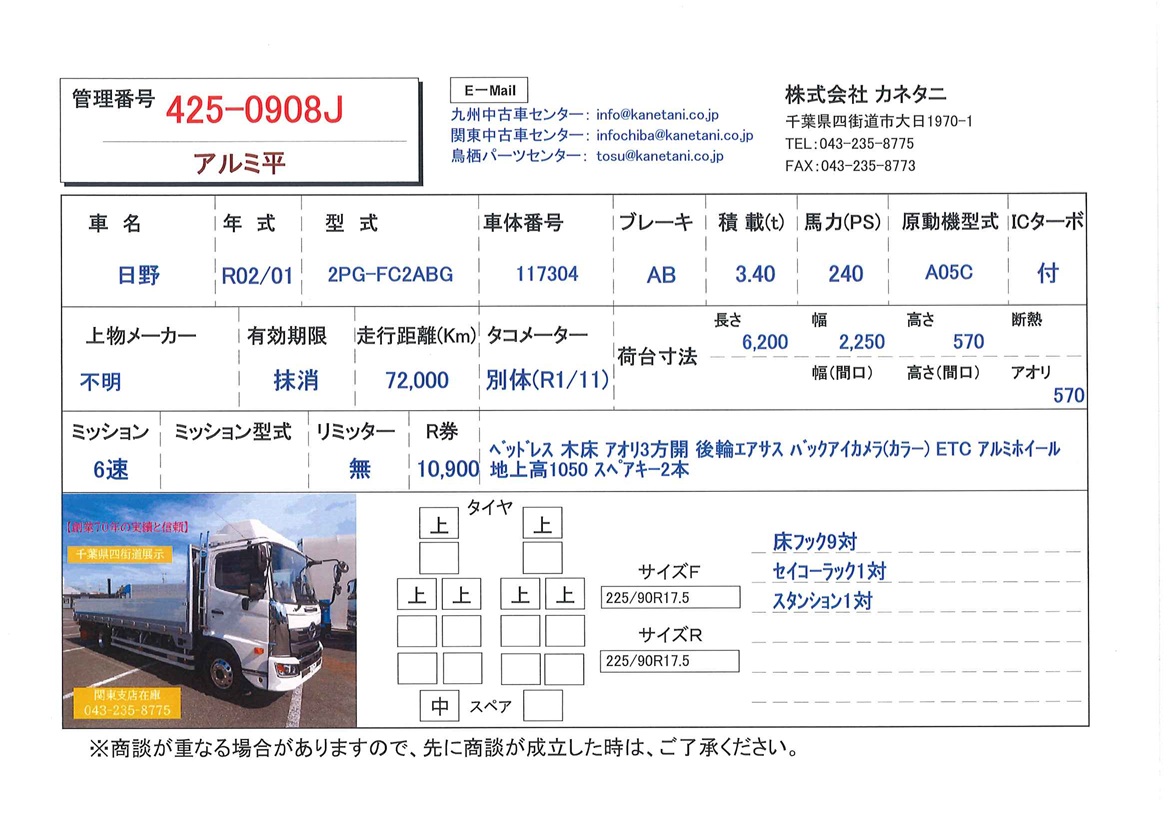 | 形状 | アルミ平 | 年式 | R02/01 |