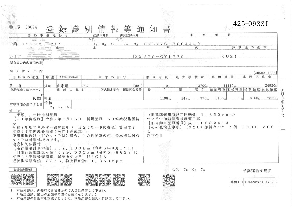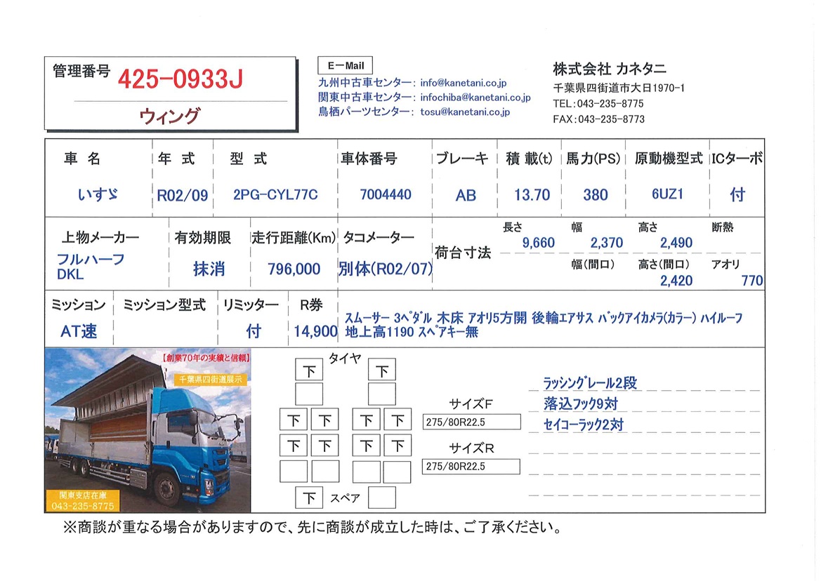 お問い合わせ番号:425-0933J| クラス(車両) | 大型 | メーカー | いすゞ |