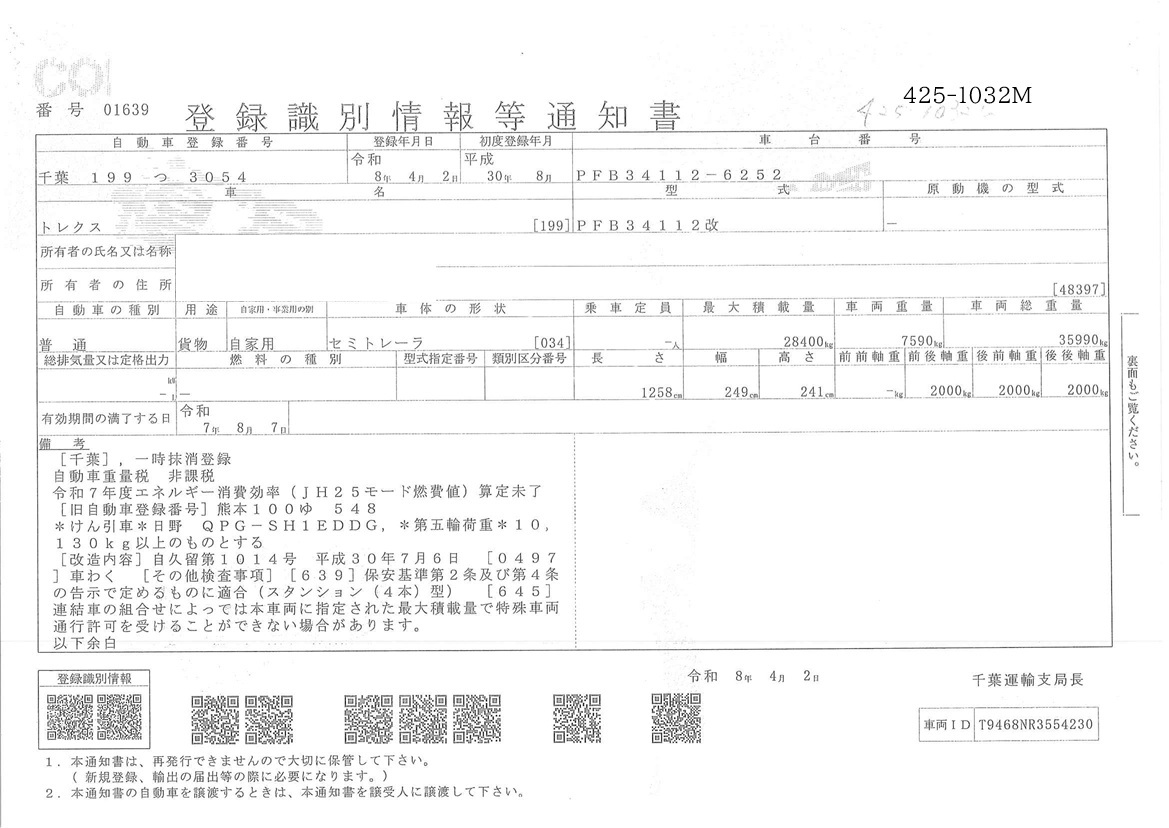 | 形状 | セミトレーラー | 年式 | H30/08 |