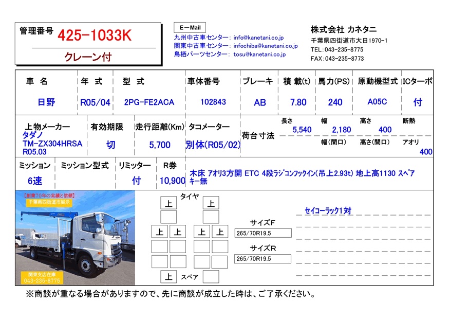 | 形状 | クレーン付 | 年式 | R05/04 |
