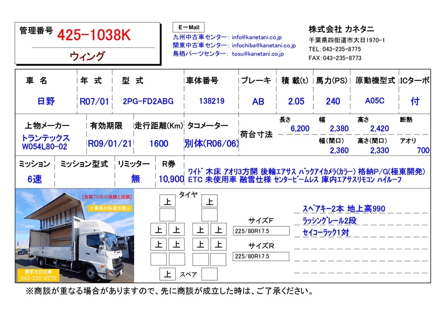 | 備考 | ワイド 木床 アオリ3方開 後輪エアサス バックアイカメラ(カラー) 格納P/G(極東開発) ETC 未使用車 融雪仕様 センタービームレス 庫内エアサスリモコン ハイルーフ |