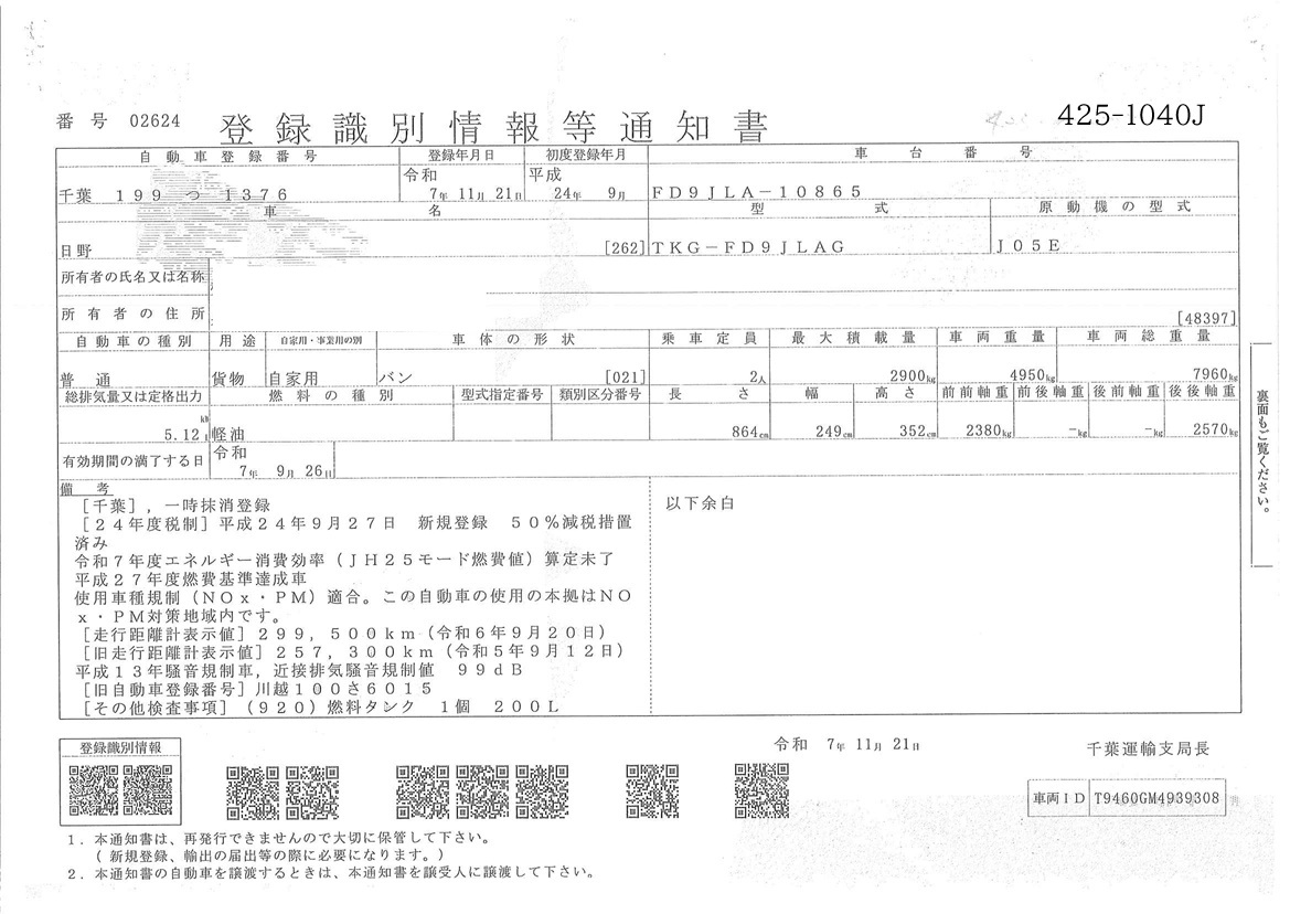 | 車検期限 | 抹消 | 走行距離 | 330,000Km |