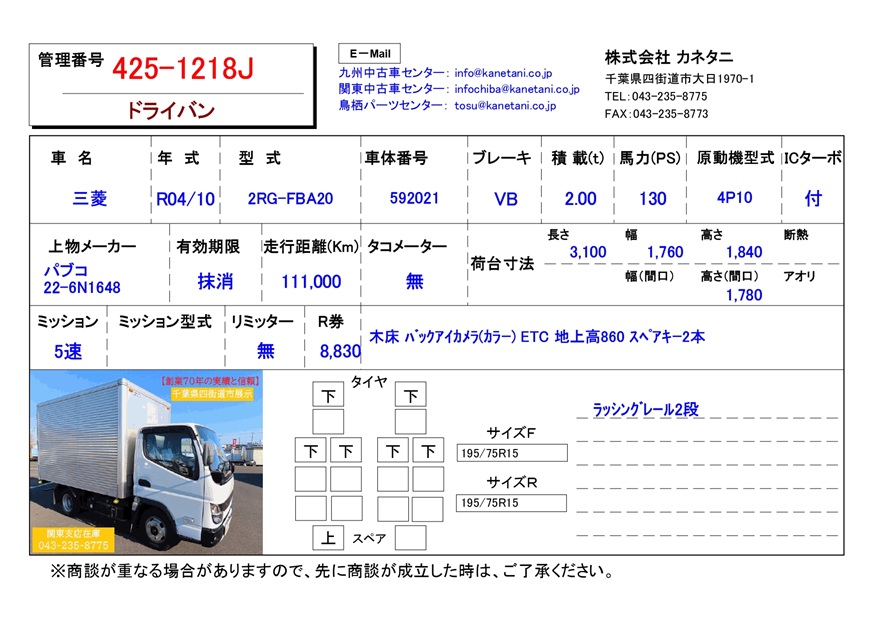 | 形状 | ドライバン | 年式 | R04/10 |