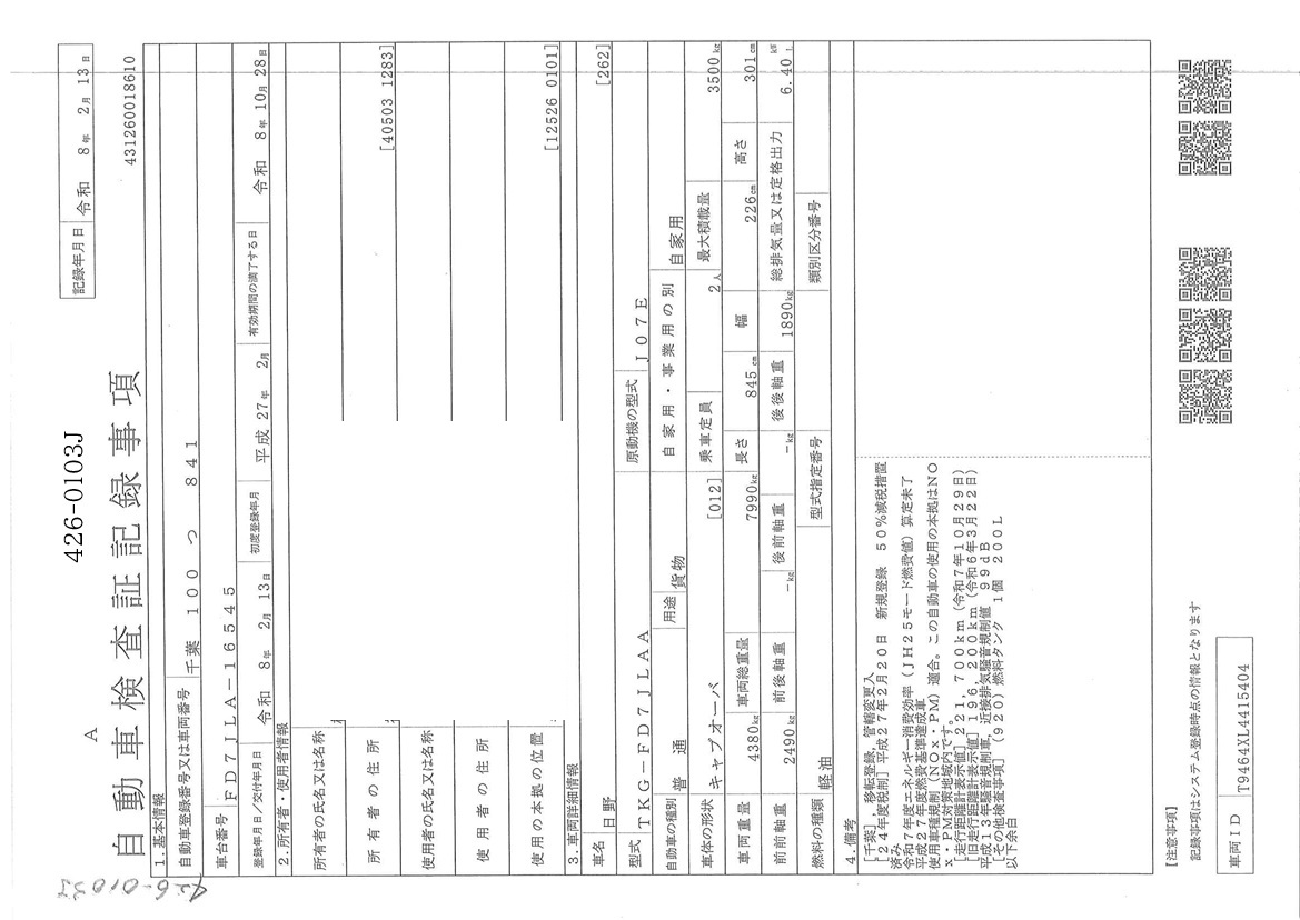 | 形状 | アルミ平 | 年式 | H27/02 |