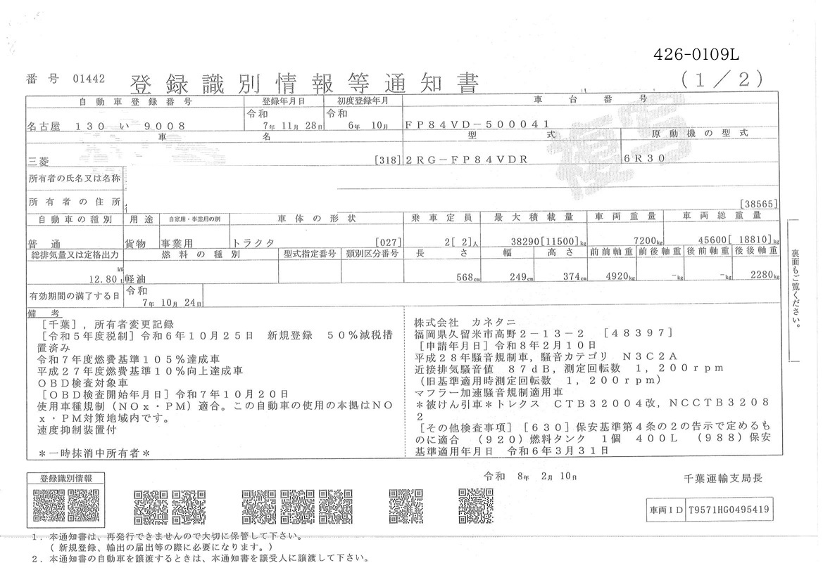 | 形状 | トラクター | 年式 | R06/10 |