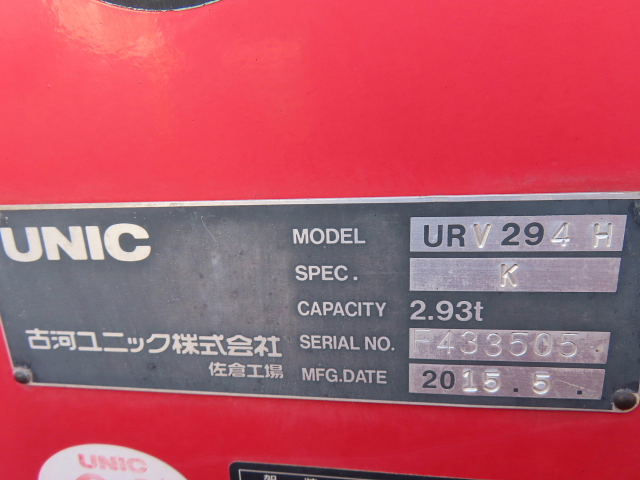 | 備考 | ユニック 4段ラジコンフックイン(吊上2.93t) URV294H ハイジャッキ ワイド 木床 アオリ3方開 アドブル無 ETC 地上高980 メインキー1 |